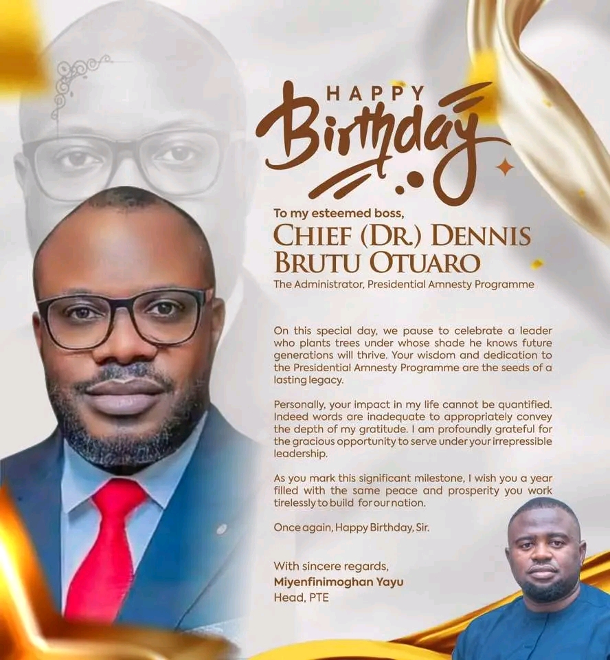 The Administrator of the Presidential Amnesty Programme (PAP), Chief (Dr.) Dennis Brutu Otuaro, Ph.D., has continued to receive glowing tributes from staff and associates as he marks his birthday.