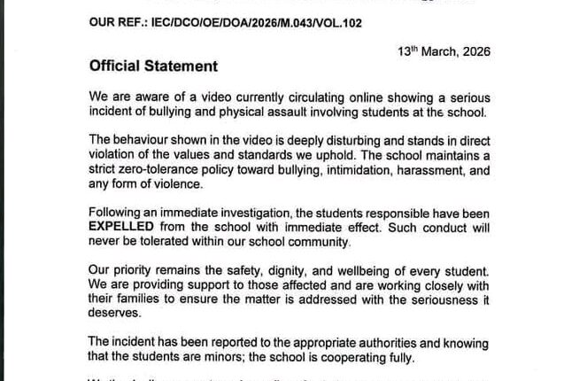 Igbinedion, however, commended the swift response by the school’s management and board in handling the matter.