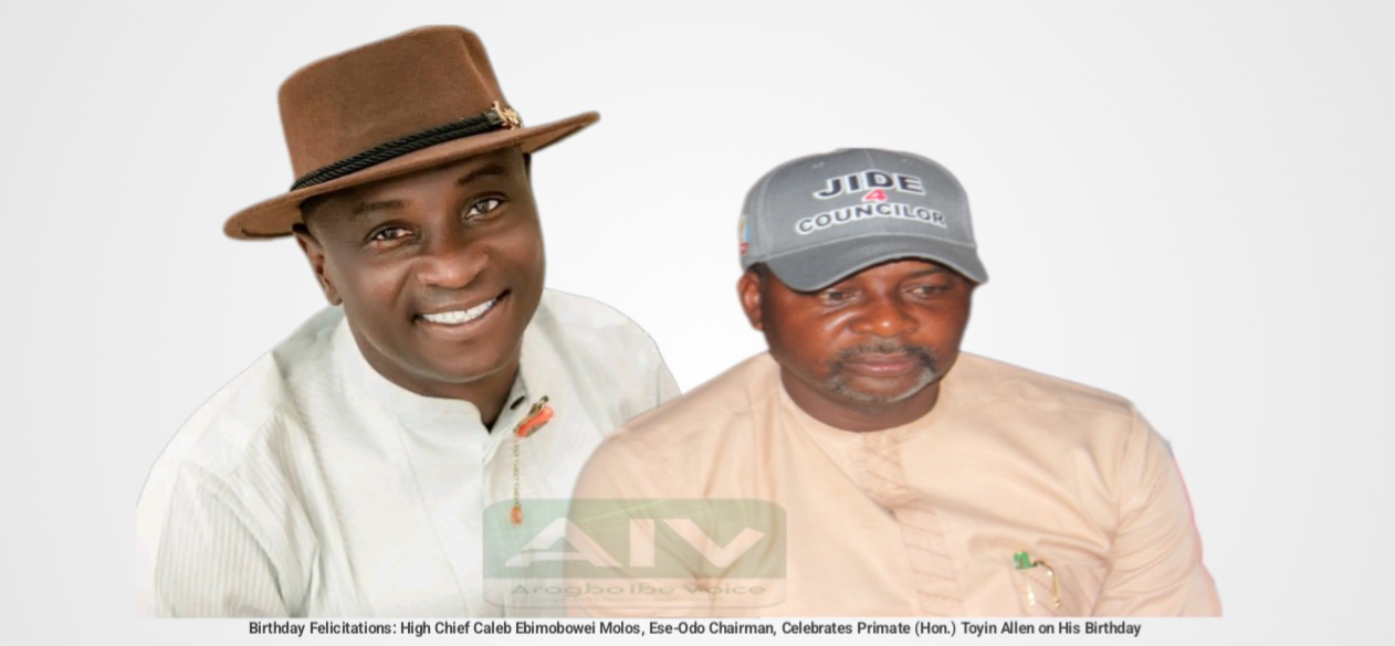 High Chief Caleb Ebimobowei Molos, a prominent political figure and Chairman of Ese-Odo, has extended warm birthday wishes to Primate (Hon.) Toyin Allen, a distinguished member of the Ondo State House of Assembly who also doubles as the Campaign Director-General for his council chairmanship bid.