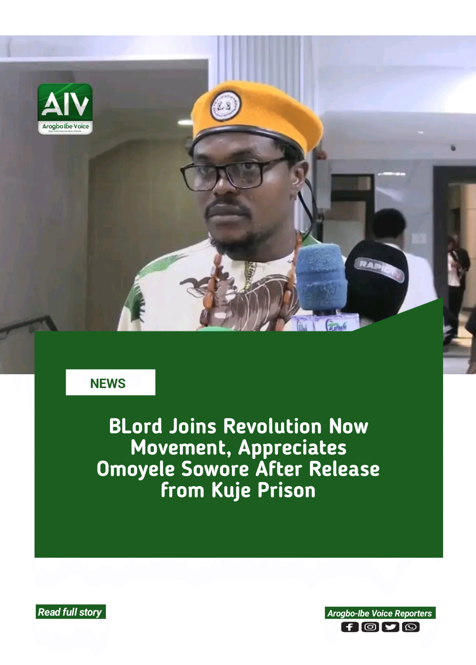 Controversial businessman and social media personality, BLord, has declared his support for the Revolution Now movement led by human rights activist and politician, Omoyele Sowore, following his recent release from Kuje Prison.