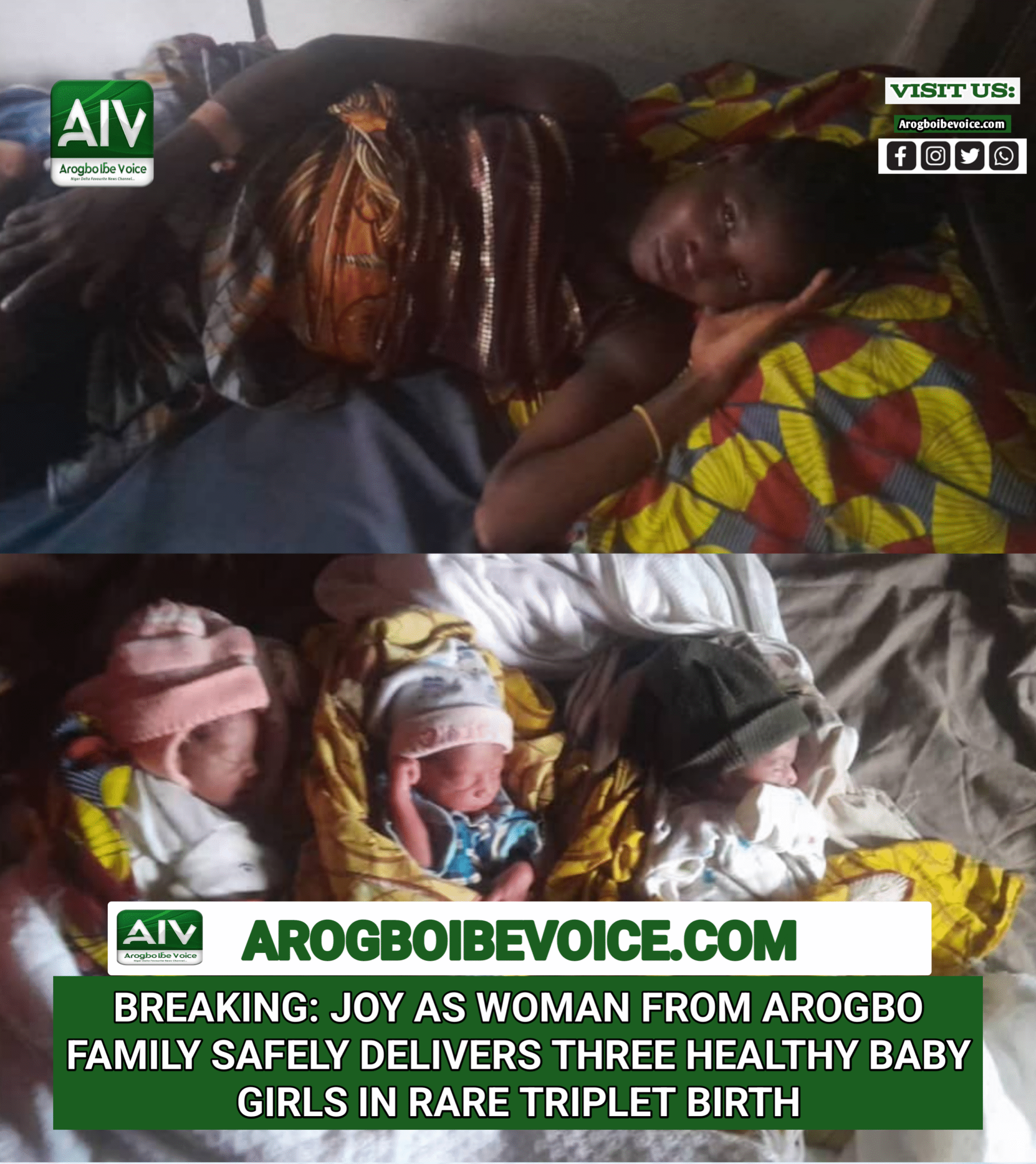 Breaking: Joy as Woman from Arogbo Family Safely Delivers Three Healthy Baby Girls in Rare Triplet Birth