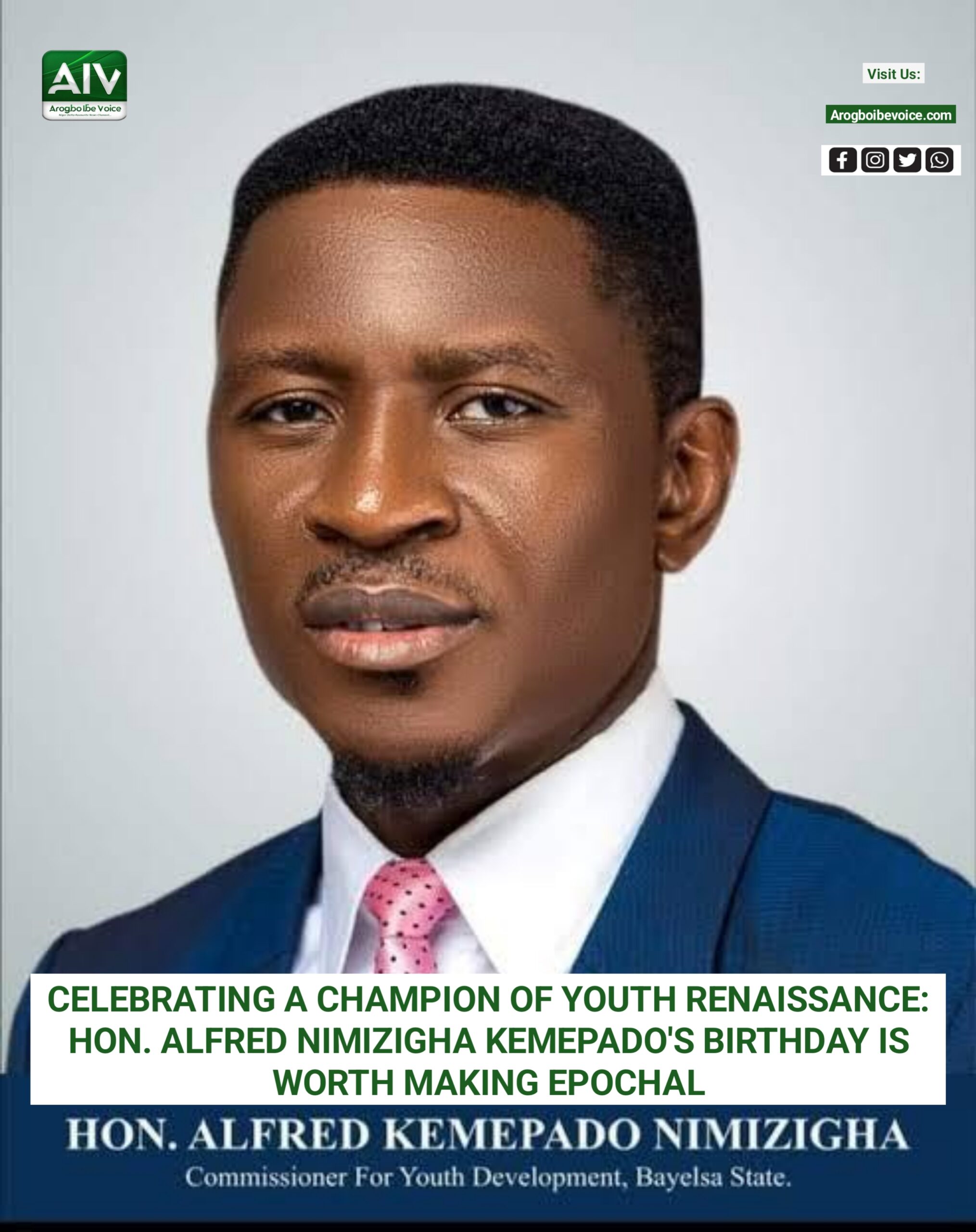 Arogbo-Ibe Voice Reporters proudly joins thousands across the Niger Delta and beyond in celebrating Hon. Alfred Nimizigha Kemepado, Honourable Commissioner for Youth Development, Bayelsa State, on his birthday. In a time when authentic leadership is scarce, Hon. Kemepado stands out as a beacon of transformation.
