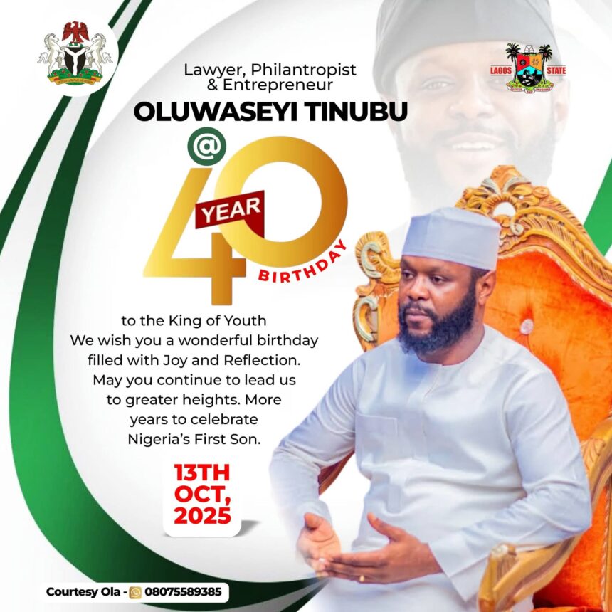 Nigeria’s first son, Mr. Oluwaseyi (Seyi) Tinubu, on Monday, October 13, 2025, marked his 40th birthday anniversary, drawing a wave of goodwill messages from political leaders, business associates, family, and admirers across the country.