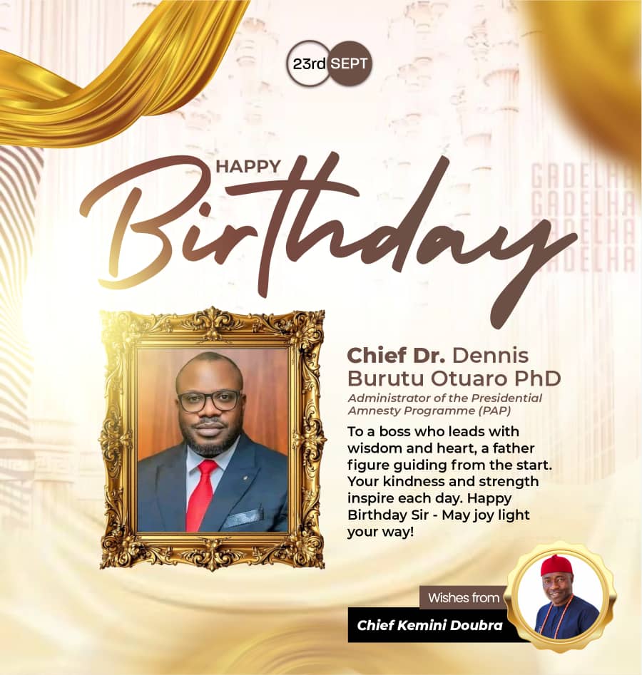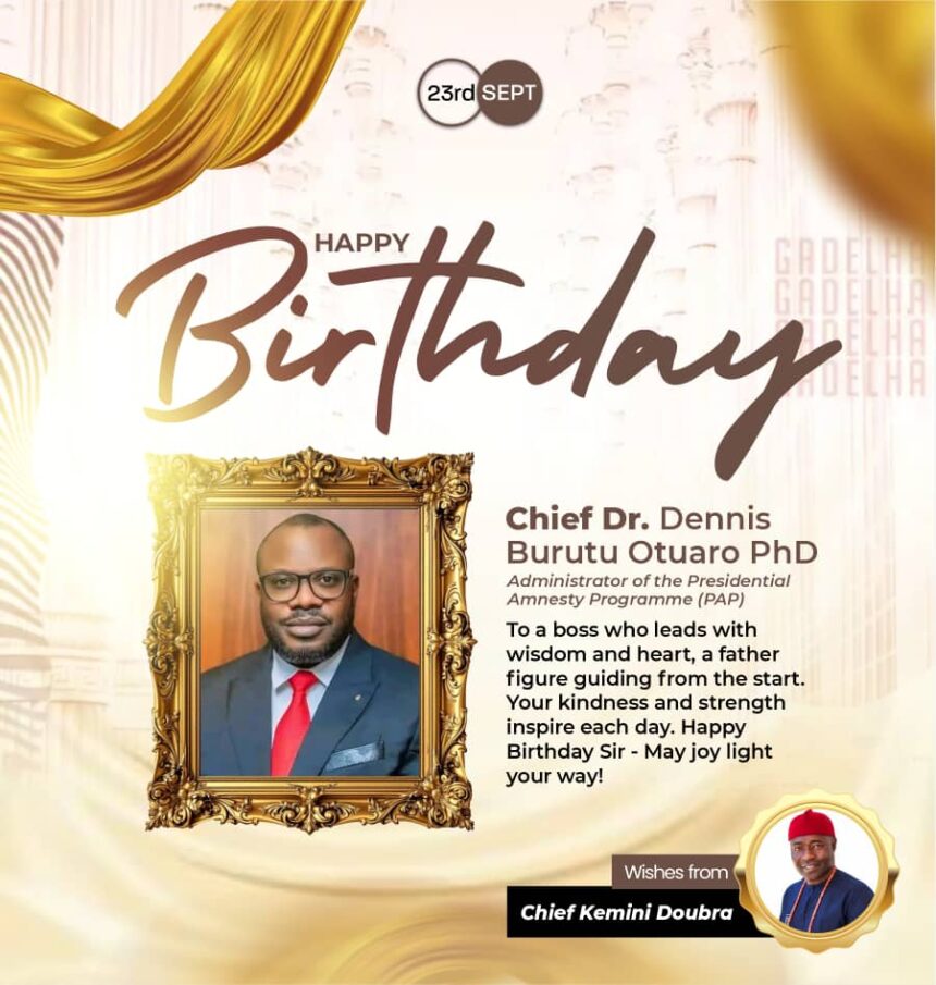 Abuja, Federal Capital Territory (FCT), the birthday of the Administrator of the Presidential Amnesty Programme (PAP), High Chief Dr. Dennis Brutu Otuaro (PhD), has sparked waves of celebration and heartfelt tributes across the country, with many describing him as a rare gift of leadership to Nigeria and the Niger Delta.