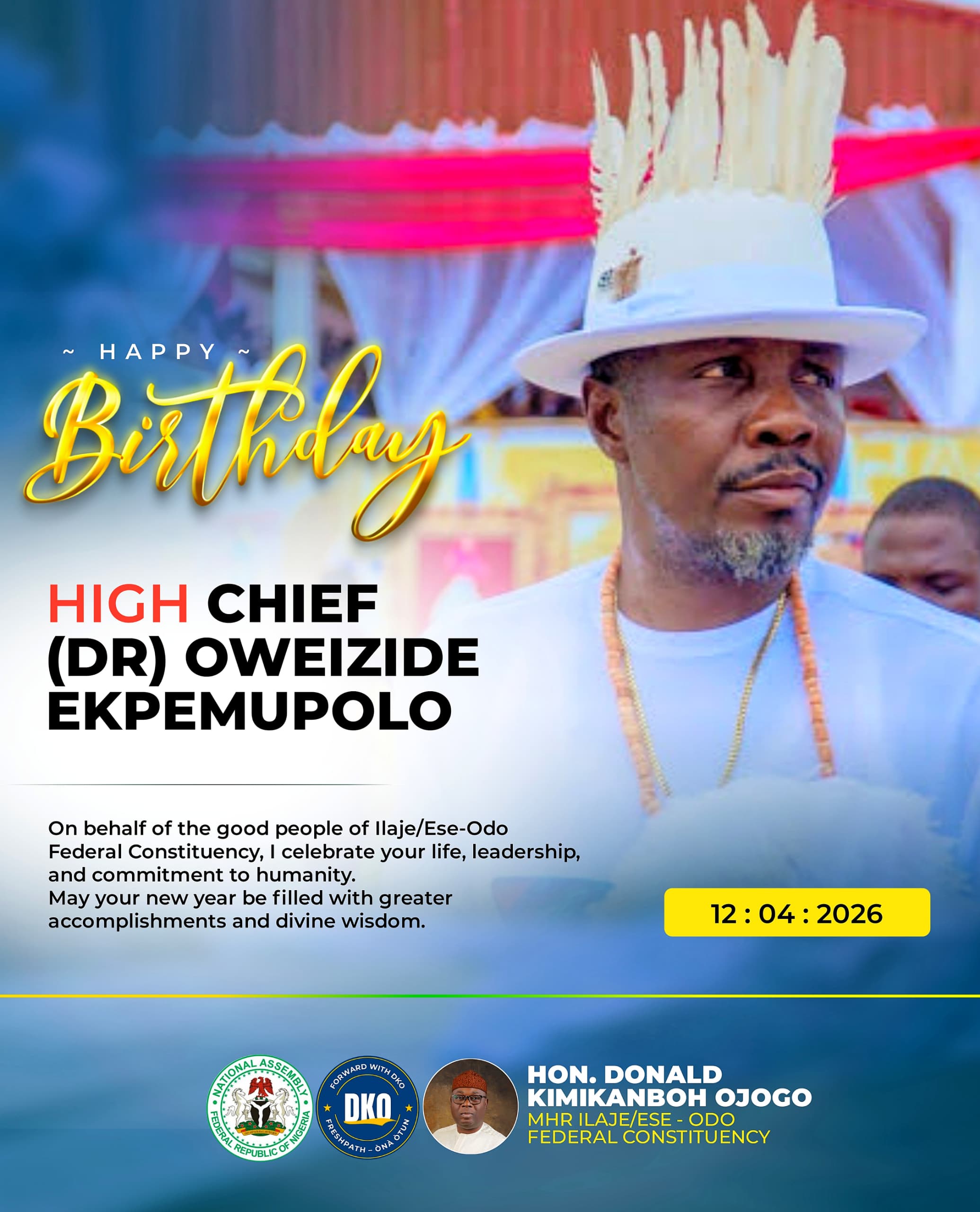 The member representating Ilaje/Ese-odofederal constituency, Hon. Donald Kimikanboh Ojogo, has congratulated Niger Delta leader and war-Lord, High Chief Government Oweizide Ekpemupolo, popularly known as Tompolo, on the occasion of his birthday, describing him as a “living legend” with enduring contributions to national development.