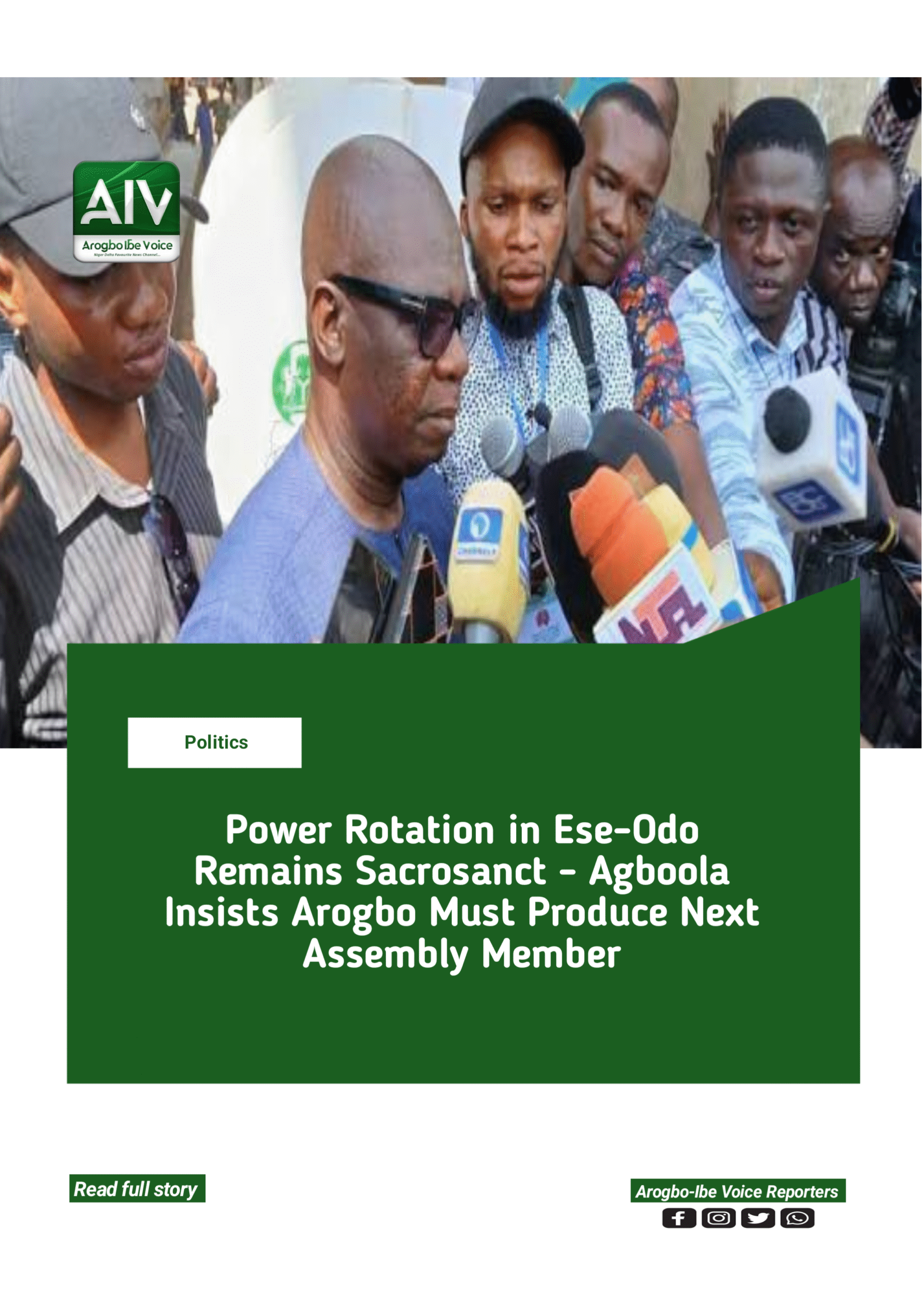 Power Rotation in Ese-Odo Remains Sacrosanct – Agboola Insists Arogbo Must Produce Next Assembly Member